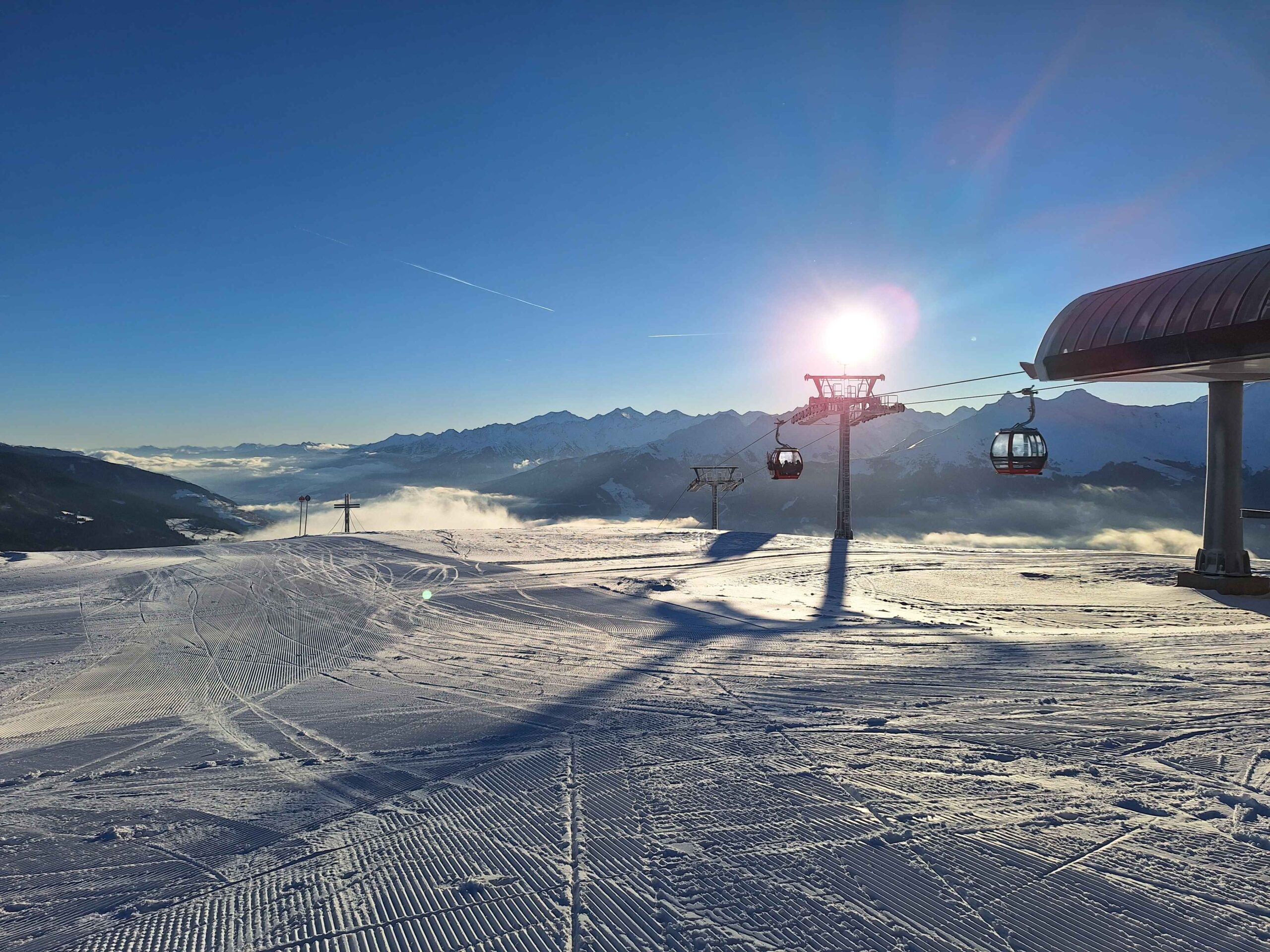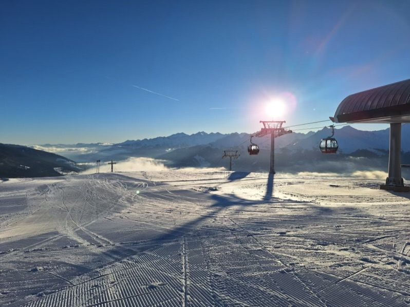The two main sectors are linked by a long cable car that needs to be taken in both directions. One time during our stay it was closed due to high winds. Crossing between areas was then only possible by ski bus. Weather issues are understandable, but this can leave you confined to a smaller part of the resort than planned.