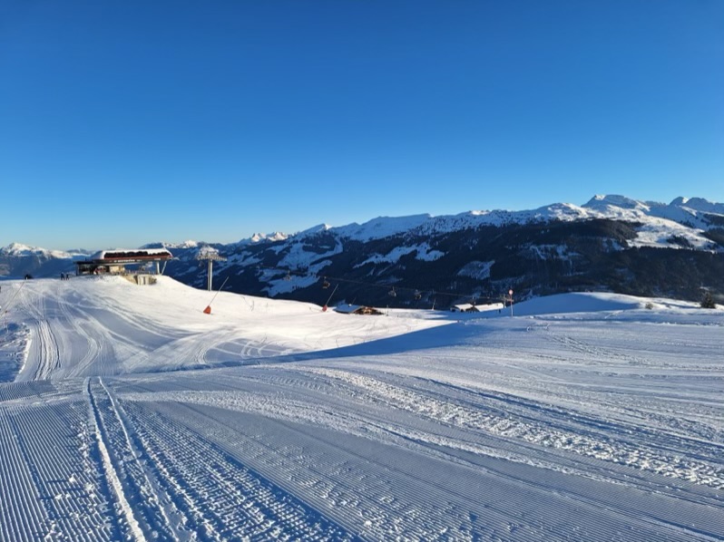 The biggest issue for me, however, was the time it took to move across the resort. Jochberg Mittersill is laid out as a long, linear chain of mountains, which requires frequent traversing and offers limited route options. Meeting up with a group can take time, and there are often few slope choices off a given lift. Kitzbühel Kirchberg is better connected, but travel times are still long. Many of the linking pistes are also quite flat, making the experience feel more like transit than skiing.