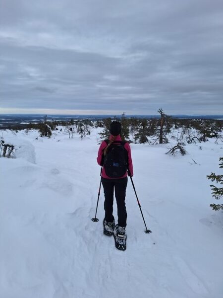 Snowshoe hiking is another fantastic winter activity to try in Lapland. Snowshoes are designed for walking over snow. Their large surface area distributes your weight, allowing you to walk on top of the snow without sinking. Walking on snow shoes is very easy, so you won’t need a guide. It might feel a bit awkward at first, but you’ll quickly get the hang of it. You can rent snow shoes easily in most rental shops. If you want to venture out on your own I’d recommend sticking to marked trails to avoid getting lost. If you feel more comfortable you can opt for a guided tour.
